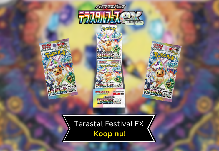Terastal Festival EX is een bijzondere Japanse Pokémon TCG-set die de magie van Terastal tot leven brengt! Deze set zit vol met schitterende Terastal Pokémon en unieke kaarten die perfect zijn voor zowel verzamelaars als spelers. Met krachtige Pokémon in hun speciale Terastal-vormen. Of je nu je verzameling wilt uitbreiden of je tegenstanders wilt verrassen met nieuwe tactieken, Terastal Festival EX is een must-have!